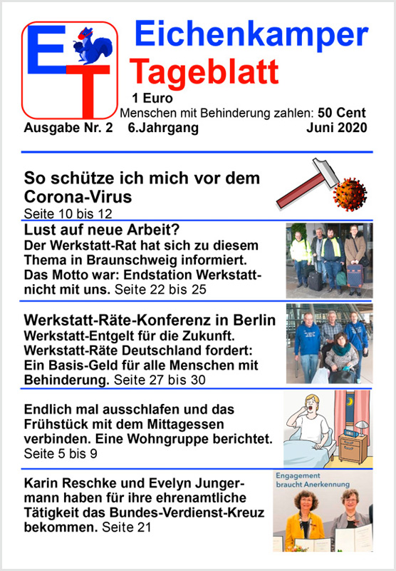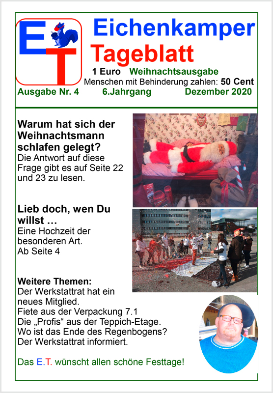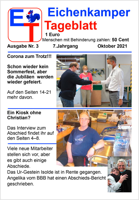 Wir haben eine Werkstattzeitung. Früher hieß sie „Eichenkamper Tageblatt”, inzwischen heißt sie „Die Werkstattspatzen”.